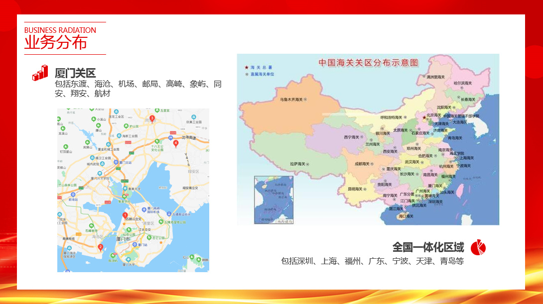 申悦集团报关业务量十多年来均连续位居福建省首位,是厦门关区覆盖网点最多的报关企业,先后成立高崎经营部(加贸业务)、象屿经营部(保税区业务)、同安经营部(陆运业务)、机场经营部(空运业务)、东渡经营部(海运业务)、海沧经营部(海运业务)、翔安经营部(特殊监管区业务)、邮局经营部(跨境电商业务)、航材经营部(航空器材业务)9个业务现场和客服部(驻厂服务)。